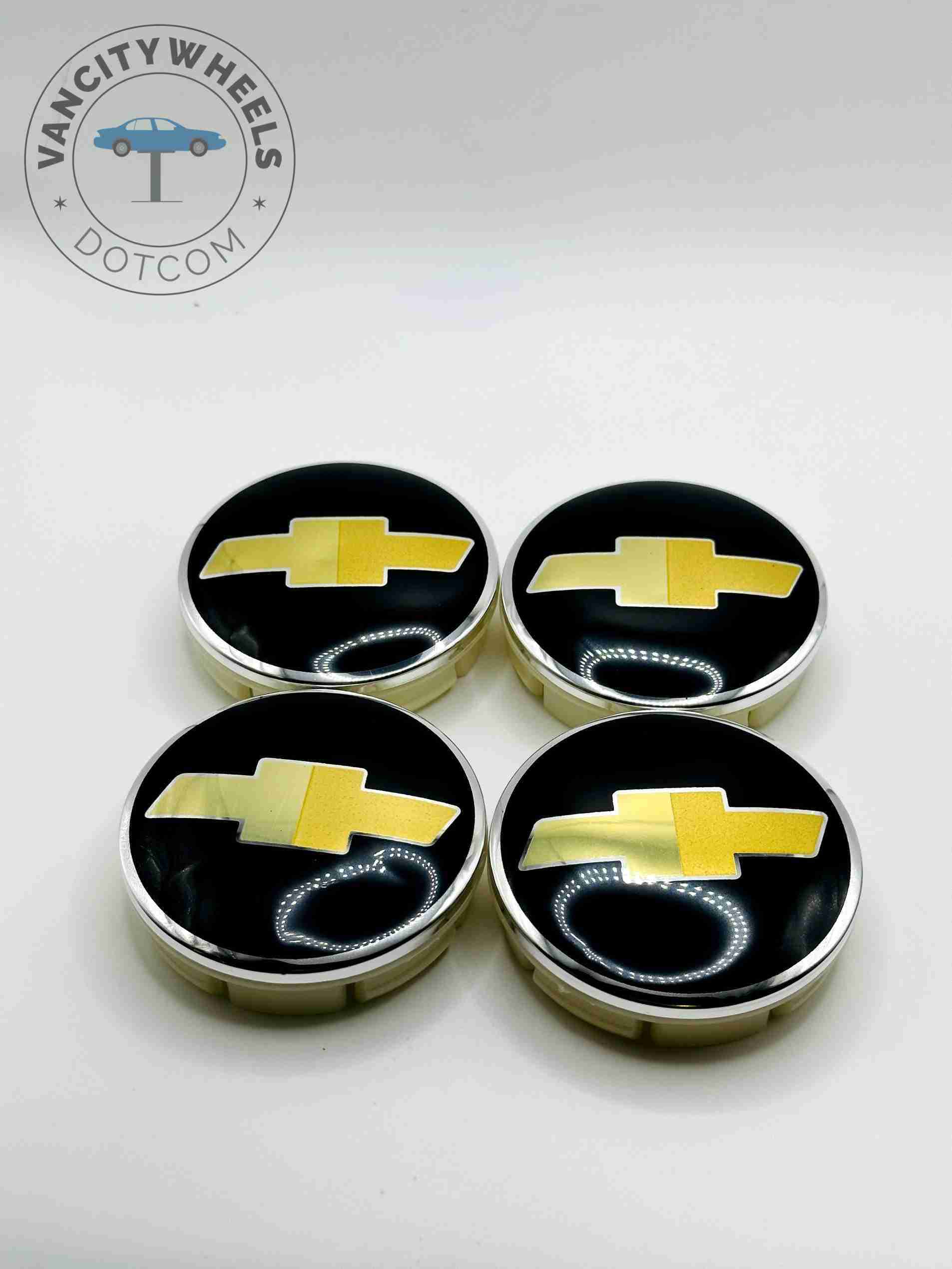 Package included: 4X 63MM Chevrolet wheel caps in Black/Gold Color