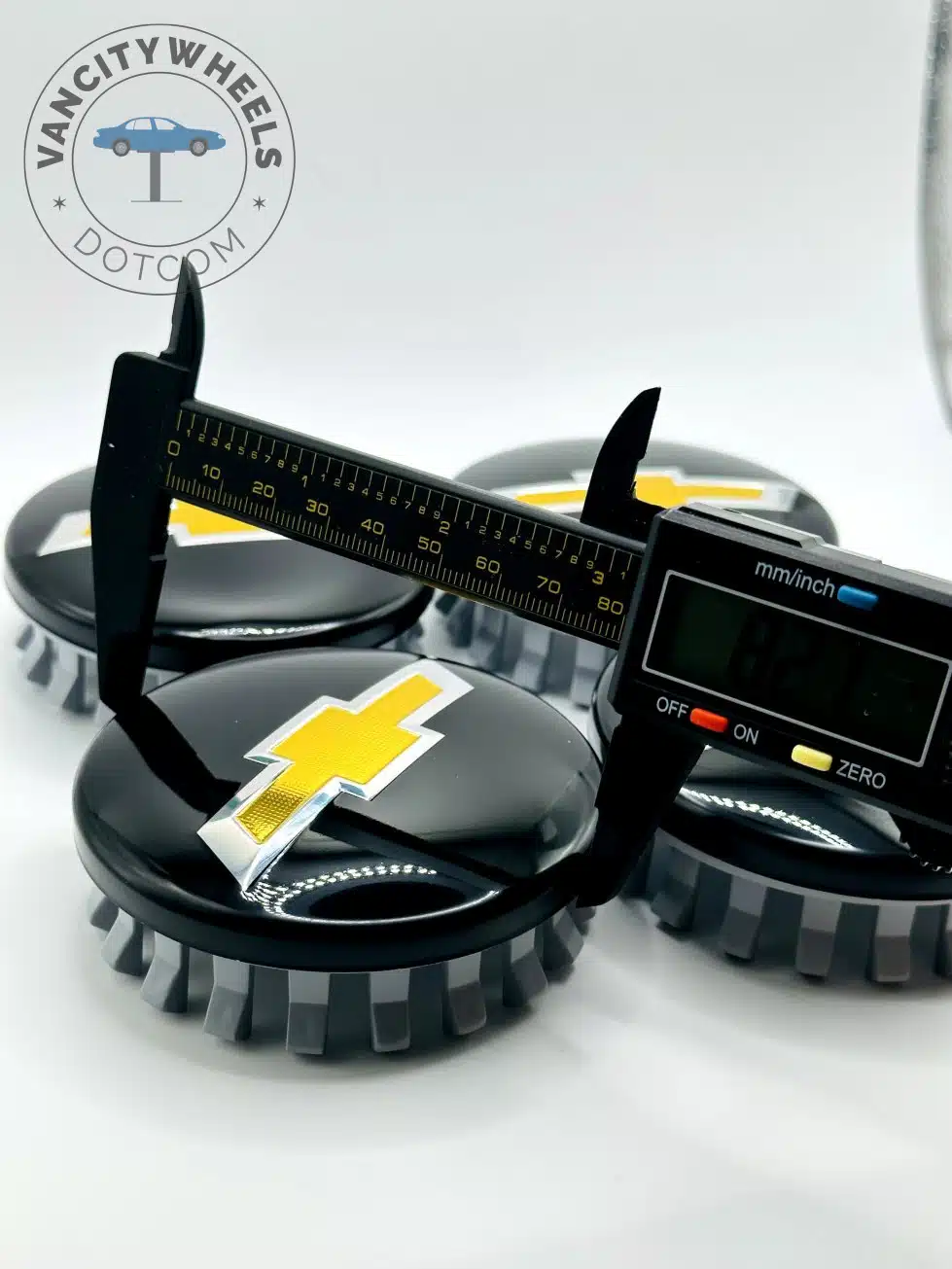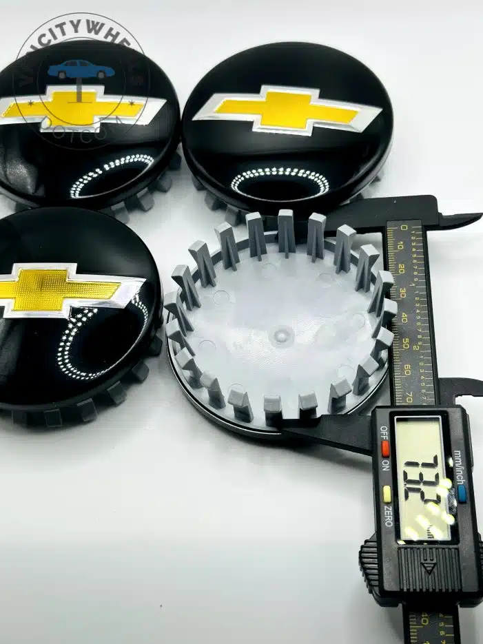 Package included: 4X 83MM Chevrolet wheel caps in Black/Gold Color