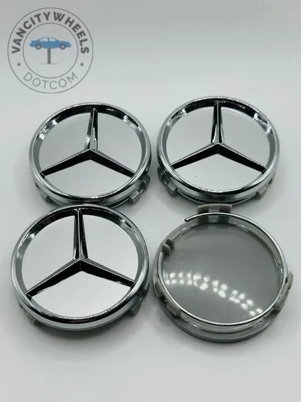 Set of 4 Gloss Chrome Mercedes Benz Alloy Wheel Center Caps 61mm, Gloss Chrome Center Hub Caps for Mercedes Benz 61mm