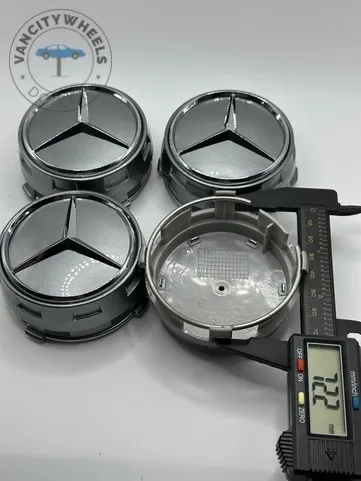 These caps fit most Mercedes-Benz wheels with a 75mm outer diameter and 72mm inner diameter. We