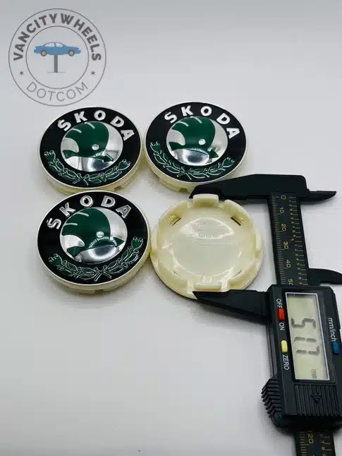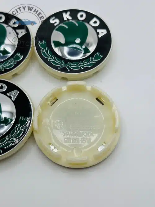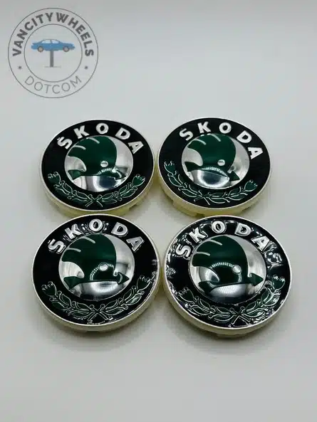 Quantity: Full set of 4 Skoda 55mm Green and Black Wheel Center Caps.