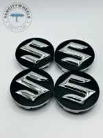 Suzuki 54mm Black & Chrome Wheel Center Caps – 4pc Set for Swift, Vitara