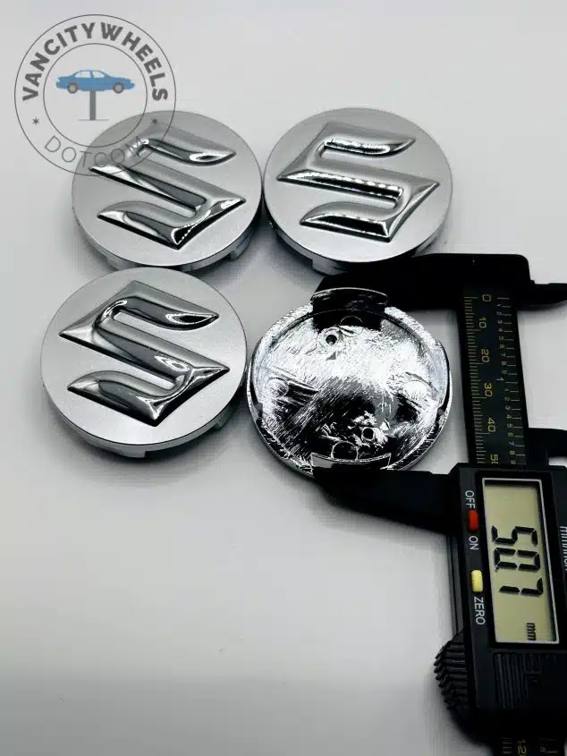 Premium Chrome Aesthetic: High-gloss silver and chrome design that perfectly complements Suzukiโs factory wheel finishes.