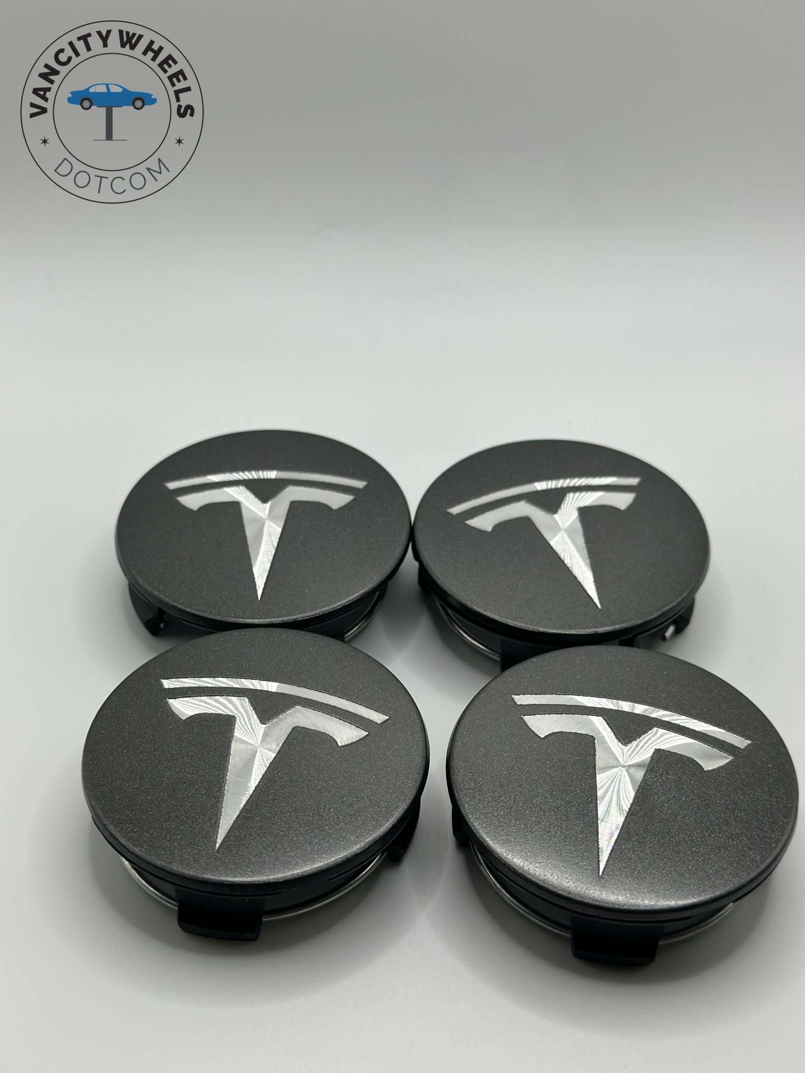 Tesla Wheel Center Caps 58mm – Graphite Black 4pc Set