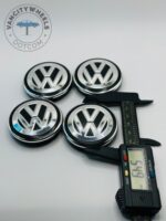 Quantity: Full set of 4 Volkswagen 55mm Grey and Silver Wheel Center Caps.
