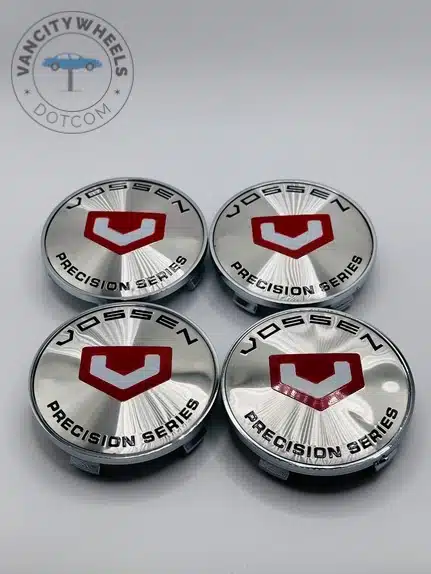Quantity: Full set of 4 Vossen 60mm Chrome and Red Wheel Center Caps.
