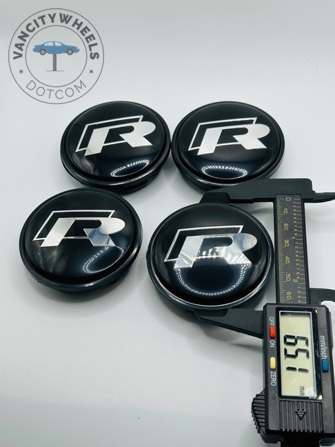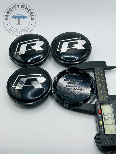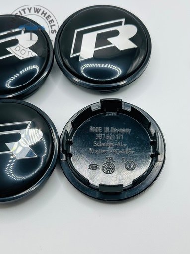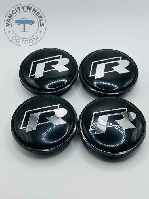 Quantity: Full set of 4 VW R 65mm Black Wheel Center Caps.